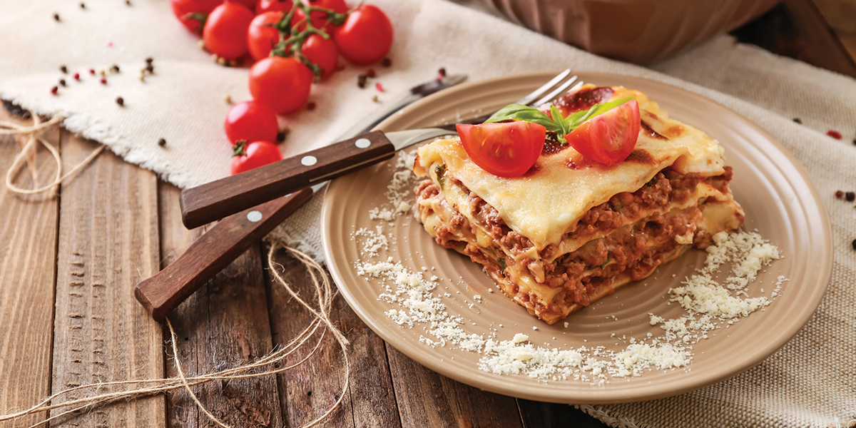 Na maslu prepražimo slanino, dodamo sesekljano čebulo in korenček. Nato dodamo mleto meso, začinjeno s soljo, poprom in muškatnim oreškom. Ko je meso enakomerno zapečeno, dodamo pretlačen paradižnik, paradižnikovo mezgo in zajemalko vode. Ko omaka zavre, znižamo temperaturo in dušimo še eno uro. Medtem za bešamel stopimo maslo, dodamo moko, počakamo, da porumeni in počasi prilivamo mleko. Med mešanjem dodamo sol, poper in muškatni orešek.