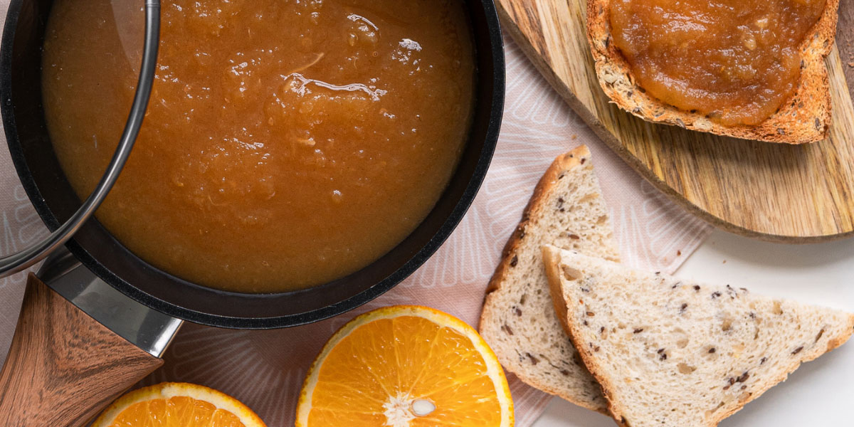 - Pomaranče ožamemo in sok zlijemo v srednje velik lonec.