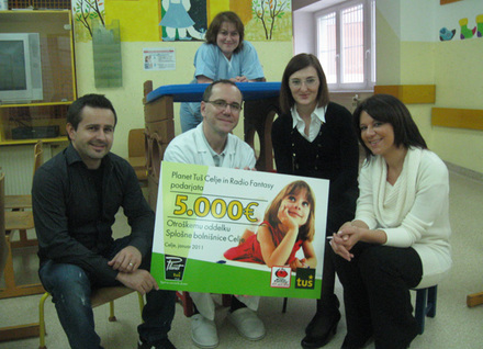 Ček v vrednosti 5.000 evrov so predstojniku otroškega oddelka celjske bolnišnice Andreju Mlakarju in glavni sestri oddelka Katji Mulej Hren predali Anja Marjetič iz Tuša ter Janko in Dijana iz zajtrka Prvakov Radia Fantasy.