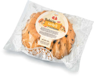 PŠENIČNA moka, sladkor, olje oljne ogrščice, JAJCA, rozine 8 % (rozine 99,5 %, sončnično olje), sredstvo za ohranjanje vlage: sorbitoli, glicerol; PŠENIČNI škrob, glukozni sirup, sredstvo za vzhajanje: difosfati, natrijevi karbonati; sredstvo za uravnavanje kislosti: natrijevi acetati; emulgator: mono- in digliceridi maščobnih kislin; koruzni škrob, sol, aroma, SOJINA moka, sredstvo za zgostitev: ksantan gumi.nIzdelek lahko vsebuje sledi oreškov, arašidov in mleka.