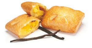 PŠENIČNA bela moka tip 500, voda, kvas, jedilna sol, margarina (delno hidrogenirana rastlinske maščobe (palma, kokos), rastlinska olja (soja, sončnice, oljna ogrščica in koruza v spremenljivih deležih), voda, emulgatorja: mono- in digliceridi maščobnih kislin in SOJIN lecitin, jedilna sol, sredstvo za uravnavanje kislosti: citronska kislina, arome, barvili: anato in kurkumin), PŠENIČNI gluten, LAKTOZA in MLEČNE beljakovine, palmino olje, sladkor, aroma, sredstvo za obdelavo moke: askorbinska kislina.