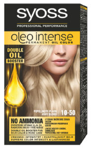 Color-Creme/Crme Colorante/Barvna krema: Aqua (Water, Eau) · Cetearyl Alcohol · Ammonium nHydroxide · Coconut Alcohol · Sodium Laureth Sulfate · Isostearic Acid · Sodium Lauryl Glucose nCarboxylate · Dimethicone · Bis-Diisopropanolamino-PG-Propyl Dimethicone/Bis-Isobutyl PEG-14 nCopolymer · Potassium Hydroxide · Lauryl Glucoside · Toluene-2,5-Diamine Sulfate · Myristic Acid · nCeteareth-20 · Parfum (Fragrance) · Ceteareth-12 · Resorcinol · Sodium Chloride · Prunus Armeniaca n(Apricot) Kernel Oil · Sodium Sulfite · Sodium Silicate · Citric Acid · Etidronic Acid · Ammonium nSulfate · Butyloctanol · Polysorbate 20 · Linalool · Ascorbic Acid · m-Aminophenol · 2-Amino-4-nHydroxyethylaminoanisole Sulfate · 2-Methylresorcinol · Citronellol · Sorbic Acid · 4-Chlororesorcinol · nLactic Acid · 2-Amino-3-Hydroxypyridine · Sodium Benzoate · Benzyl Alcohol Entwicklerlotion/nÉmulsion révélatrice/Razvijalec barve: Aqua (Water, Eau) · Hydrogen Peroxide · Cetearyl Alcohol · nPEG-40 Castor Oil · Etidronic Acid · Sodium Cetearyl Sulfate · 2,6-Dicarboxypyridine · Disodium nPyrophosphate · Potassium Hydroxide · Sodium Benzoate Pflege-Conditioner/Masque soin/nNegovalni regenerator: Aqua (Water, Eau) · Cetearyl Alcohol · Isopropyl Myristate · Behentrimonium nChloride · Magnesium Chloride · Magnesium Citrate · Amodimethicone/Morpholinomethyl nSilsesquioxane Copolymer · Olea Europaea (Olive) Fruit Oil · Prunus Armeniaca (Apricot) Kernel Oil · nDimethylsilanol Hyaluronate · Biotin · Distearoylethyl Hydroxyethylmonium nMethosulfate · Stearamidopropyl Dimethylamine · Cetyl Palmitate · nDimethicone · Lactic Acid · Parfum (Fragrance) · Sodium Benzoate · Isopropyl nAlcohol · Panthenol · Cetrimonium Chloride · Guar Hydroxypropyltrimonium nChloride · Sodium Hydroxide · Trideceth-5 · Phenoxyethanol · Benzyl Alcoho