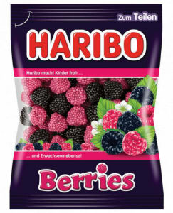 sladkor, glukozni sirup, voda, želatina, želirno sredstvo: agar-agar; kislina: citronska kislina; barvila: rastlinsko oglje, beta karoten, karminska kislina; aroma, sredstvi za glaziranje: čebelji vosek beli in rumeni, karnauba vosek.