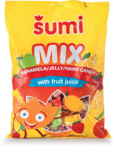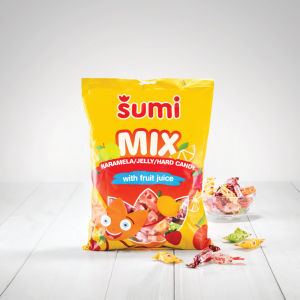 Sladkor, glukozni sirup, rastlinska maščoba (palmina), voda, želatina (goveja), kislina: MLEČNA kislina, citronska kislina, askorbinska kislina, sadni sokovi (jabolko, jagoda, višnja, limona, pomaranča, mandarina, malina, breskva, ananas) iz zgoščenega s