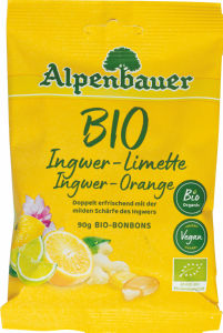 Bonboni Bio Alpenbauer, ingver, limeta, pomarača, 90 g