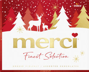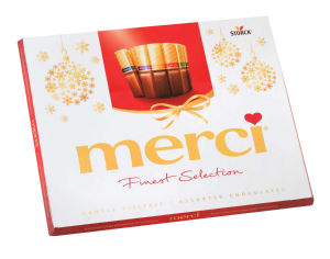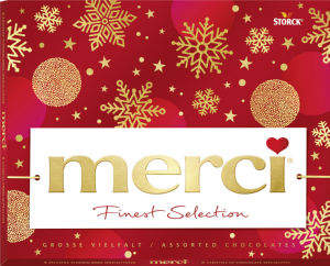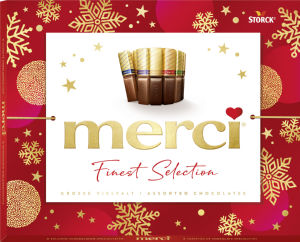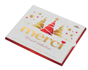 Izbor čokolad in polnjenih čokolad. Sestavine glede na okus: sladkor, kakavovo MASLO, kakavova masa, polno MLEKO v prahu, rastlinske maščobe (palmina, karitejeva), LEŠNIKI, MANDLJI, MLEKO v prahu z visoko vsebnostjo maščobe, LAKTOZA, izdelek iz SIROTKE, PINJENEC v prahu, topljeno MASLO, dekstroza, posneto MLEKO v prahu, manj masten kakav, emulgator: lecitini (SOJA), fruktoza, glukozni sirup, kava, sirup iz invertnega sladkorja, arome, sol.
