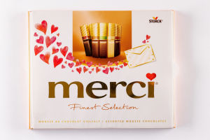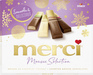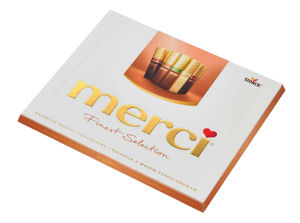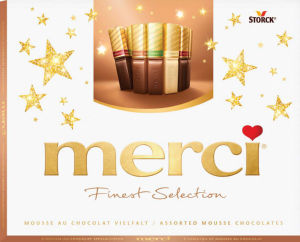 sladkor, kakavova masa, kakavovo MASLO, rastlinske maščobe (karitejeva, palmina), polno MLEKO v prahu, MLEKO v prahu z visoko vsebnostjo maščobe, topljeno MASLO, posneto MLEKO v prahu, mleti LEŠNIKI, LAKTOZA, PINJENEC v prahu, emulgator: lecitini (SOJA), mleti MANDLJI, arome, sol.