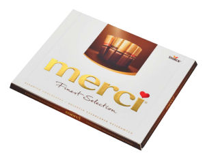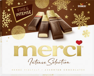 Izbor čokolad in polnjenih čokolad. Sestavine glede na okus: sladkor, kakavova masa, kakavovo MASLO, MLEKO v prahu z visoko vsebnostjo maščobe, mleti MANDLJI, rastlinske maščobe (karitejeva, palmina), polno MLEKO v prahu, izdelek iz SIROTKE, LAKTOZA, manj masten kakav, posneto MLEKO v prahu, topljeno MASLO, fruktoza, kava, emulgator: lecitini (SOJA), glukozni sirup, sirup iz invertnega sladkorja, PINJENEC v prahu, dekstroza, arome, sol.
