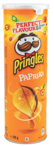 Dehidriran krompir, sončnično olje, PŠENIČNA moka, koruzna moka, riževa moka, začimbe z okusom paprike (sladkor, paprika v prahu, ojačevalci arome (mononatrijev glutamat, dinatrijev gvanilat, dinatrijev inozinat), dekstroza, kvas v prahu, čebula v prahu, sol, granulirana jušna osnova (sol, hidrolizirane rastlinske beljakovine, sončnično olje), arome, česen v prahu, barvilo (izvleček paprike), kislina (citronska kislina), sladka sirotka v prahu (MLEKO), maltodekstrin, emulgator (E471), sol, barvilo (anato norbiksin).