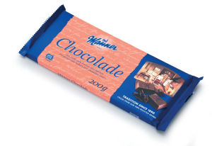 Sladkor, kakavova masa, kakavovo maslo, emulgator: SOJIN LECITIN, naravna aroma. Kakavovi deli: minimalno 41 % v čokoladi. Lahko vsebuje sledi oreščkov in sestavin mleka.