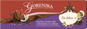 Čokolada mlečna Gorenjka, rozine in lešniki, 250 g