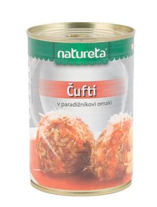 Paradižnikova omaka 76% (voda, paradižnikov koncentrat 7,5%, PŠENIČNA moka, sončnično olje, jodirana sol, sladkor, Worcester omaka (kislina: ocetna kislina, GORČICA)), mesne kroglice 24% (goveje meso 42%, prekajena prešana slanina 25% (svinjsko meso, voda, sol, dekstroza, začimbe, začimbni ekstrakti, stabilizator: trifosfati, gostilo: karagenan, svinjske beljakovine, antioksidant: natrijev eritorbat, arome, konzervans: natrijev nitrit), riž, čebula, SOJINA moka, jodirana sol, zelenjavna mešanica (jodirana sol, sušena zelenjava 15% (korenje, pastinak, krompir, čebula, LISTNA ZELENA, peteršilj), ojačevalca arome: mononatrijev glutamat, dinatrijev inozinat; sladkor, začimbe, koruzni škrob, barvilo: riboflavini), začimba, naravna aroma.