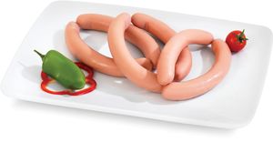 svinjsko meso, goveje meso, slanina, voda, sol, krompirjev in modificiran škrob, grahova moka, vlakna citrusov, začimbe arome, dekstroza, stabilizatorja E450,E451, antioksidanti E300,E316, sredstvi za uravnavanje kislosti: E270, E330, ojačevalec arome E621, barvilo E120, konzervans E250.