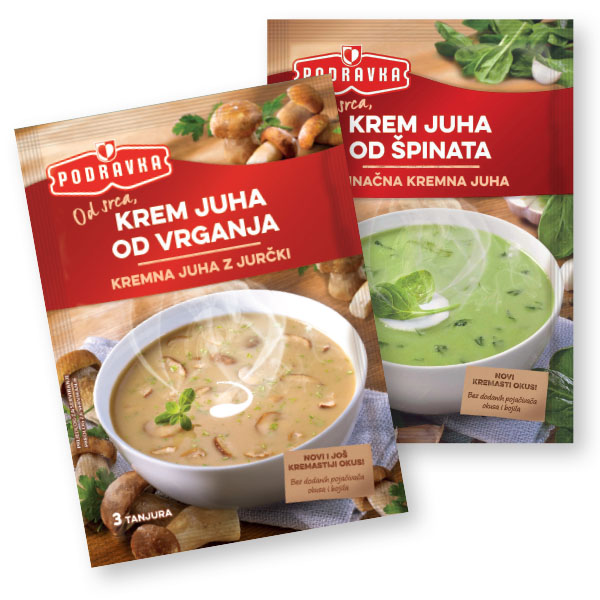 PŠENIČNA moka, koruzni škrob, palmovo olje, SIROTKA v prahu (MLEKO), kuhinjska sol, posneto MLEKO v prahu, sušeni jurčki 4,9%, izvlečki kvasa, sušena čebula, arome, list peteršilja, začimbe. Lahko vsebuje JAJCA in ZELENO v sledovih.