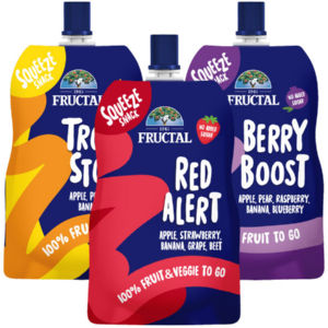 jabolčna kaša 45% (iz kaše in zgoščene kaše), breskova kaša 20%, mangova kaša 15%, bananina kaša10%; pomarančni sok iz zgoščenega soka 10%, antioksidant: askorbinska kislina.