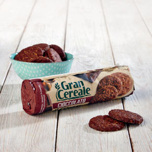 PŠENIČNA polnozrnata moka 31,6%, sladkor, OVSENI kosmiči 13,2%, ekspandirana karamelizirana durum PŠENICA 13% (durum PŠENICA, sladkor, med, sončnično olje), sončnično olje, čokolada 10,7% (sladkor, kakavova masa, kakavovo maslo, manjmasten kakav, emulgator: lecitini (SOJA)), manjmasten kakav 3,8%, praženi LEŠNIKI 2,5%, sredstva za vzhajanje: amonijevi karbonati, natrijevi karbonati; jedilna morska sol, arome (MLEKO), izvleček oljčnih listov.