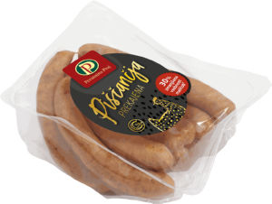 Piščančje meso 70%,puranje meso ,voda, začimbe, dekstroza ,stabilizatorja: difosfati(E450) in trifosfati(E451),sol,antioksidant:natrijev eritorbatn(E316); arome in ekstrakti začimb,konzervansa:natrijev nitrit (E250).