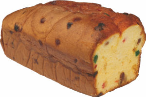 PŠENIČNA bela moka, JAJCA, sladkor, margarina (rastlinska olja in maščobe (maščoba (kokosova), olje (sončnično)), voda), rastlinsko olje (sončnično, sojino in repično v spremenljivem razmerju), 6% sadje (rozine, kandirane pomarančne lupine), 9% kandirane kocke (glukozno-fruktozni sirup, repa, saharoza, sredstvo za uravnavanje kislosti (citronska kislina), konzervans (ŽVEPLOV DIOKSID), barvilo (E102 tartazin, E124 rdeče R4, E131 modro V)), rum, LAKTOZA, emulgatorja (E472b, E475), sredstvi za vzhajanje (natrijev difosfat, natrijev bikarbonat), drobtine (PŠENIČNA bela moka, voda, kvas, jedilna sol), posneto MLEKO v prahu, stabilizator (ksantan gumi), jedilna sol, aroma, konzervans (sorbinska kislina). Lahko vsebuje sledove sezama, soje, orehov in lešnikov.