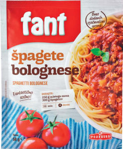 Špagete skuhajte in odcedite. Na olju prepražite mleteo meso in odstavite z ognja. Vsebino vrečke vsujte v 500 mL mlačne vode. Zalijte popraženo meso in pustite da zavre. Kuhajte na srednje močnem ognju približno 10 minut ob neprestanem mešanju. Postrezi