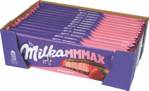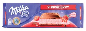 Sladkor,palmina maščoba,SIROTKA v prahu,kakav.maslo,posneto MLEKO v prahu,kakav.masa,JOGURT iz posnetega MLEKA v prahu (2,5%),MLEČNA maščoba,zgoščeni sok jagod (0,8%), emulgatorji (SOJIN lecitin, sončnični lecitin),LEŠNIKOVA pasta,jagoda v prahu (0,1%),ki