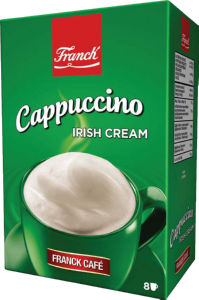 Sladkor, glukozni sirup, popolnoma hidrogenirano kokosovo olje, posneto MLEKO v prahu, MLEČNE beljakovine, instant kava (4%), aroma, LAKTOZA (iz MLEKA), delno hidrogenirana rastlinska mast (kokosova ni palmina), stabilizator e340, sol, snov za preprečevanje sprijemanja e551, emulgator e471, barvilo e160a.
