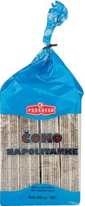 Sladkor, PŠENIČNA moka, rastlinsko olje (palma), dekstroza, manjmasten kakavov prah (3,5%), emulgator (SOJIN lecitin), jedilna sol, sredstvo za vzhajanje (natrijev hidrogenkarbonat). Lahko vsebuje LEŠNIKE, MLEKO in ARAŠIDE.
