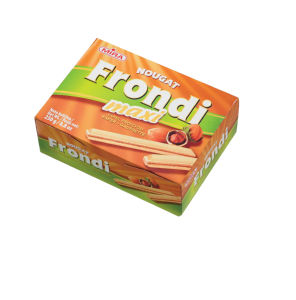 sladkor, rastlinska maščoba (palma, shea), PŠENIČNA moka, manjmasten kakavov prah, LEŠNIKI 2,5%, jedilna sol, sredstvo za uravnavanje kislosti E500, aroma, emulgator SOJIN lecitin.