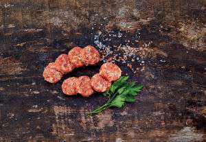 Sv.meso 48%, gov.meso 33%, sir 12%, jedilna sol, začimbe in izvlečki začimb, sušena zelenjava, zgoščeni sok acerole, naravne arome