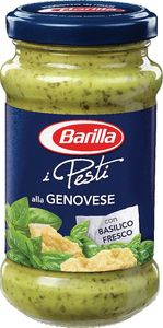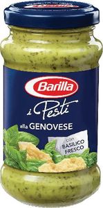 Sončnično olje, sveža bazilika 30%, INDIJSKI OREŠČKI, SIR Parmigiano Reggiano ZOP 5% (MLEKO), koruzna vlakna, SIROTKA v prahu (MLEKO), jedilna sol, MLEČNE beljakovine, ekstra deviško oljčno olje, sladkor, izvleček bazilike, naravne arome (MLEKO), sredstvo za uravnavanje kislosti: MLEČNA kislina, česen. Lahko vsebuje sledi drugih oreškov.