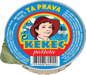 Svinjsko mastno tkivo, voda, svinjsko meso, svinjska jetra, MLEČNE beljakovine, sol, dekstroza, začimbe, ojačevalec okusa: mononatrijev glutamat, antioksidant: askorbinska kislina, barvilo: karmin, konzervans: