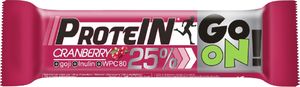 čokolada 25% (kakavova masa, sladkor, kakavovo maslo, emulgatorji: lecitini (iz SOJE), E492; naravna aroma vanilije), beljakovinski koncentrat iz sirotke WPC 80 (MLEKO) 23,7 %, glukozni sirup, fruktooligosaharidi, nehidrogenirana palmina maščoba, sredstvo za zgostitev: maltitoli; sladkane sušene brusnice 3% (brusnice, trsni sladkor, riževa moka, sončnično olje), sredstvo za ohranjanje vlage: sorbitoli; sušene goji jagode 1,5%, snovi za obogatitev: vitamin C, niacin, vitamin E, pantotenska kislina (B5), vitamin B6, tiamin (B1), vitamin B12; emulgator: lecitini (iz SOJE); aroma.