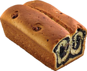 55% nadev: makov nadev (50% mak, sladkor, maltodekstrin, krompirjeva moka, BELJAK, aroma, cimet), voda, rozine, konzervans (sorbinska kislina), 45% testo: PŠENIČNA bela moka, voda, sladkor, margarina (rastlinska olja in maščobe (maščoba (kokosova), olje (sončnično)), voda) , JAJCA, kvas, posneto MLEKO v prahu, jedilna sol, emulgator (mono- in digliceridi maščobnih kislin), sredstvo za obdelavo moke (askorbinska kislina), arome, barvilo (karoteni). Lahko vsebuje sledove sezama, soje, orehov in lešnikov.