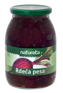 Rdeča pesa, voda, sladkor, jedilna sol, alkoholni kis, naravna aroma, začimba. Lahko vsebuje GORČICO.