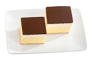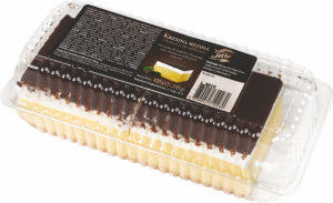Krema z okusom vanilije (voda, instant pripravek za kremo (sladkor, polnomastno MLEKO v prahu, modificiran škrob, popolnoma hidrogenirano palmino in kokosovo olje, glukozni sirup, emulgatorji (E471, E472a), sredstva za zgoščanje (E401, E404), MLEČNI proteini, aroma, sol, SIROTKA v prahu: E 160a, sok rdeče pese v prahu)), pripravek na osnovi sladkanih UHT popolnoma hidrogeniranih rastlinskih maščob (voda, hidrogenirana maščoba palminih koščic, sladkor, stabilizatorji (E420, E463), beljakovine MLEKA, emulgatorji (E472e, SOJINI lecitini, E472b), sol, aroma, barvilo (E160a)), kakavov polproizvod (sladkor, popolnoma hidrogenirana maščoba palmine koščice, manj masten kakav v prahu 16%, emulgator: sončnični lecitin, aroma), pasta LEŠNIK (sladkor, sončnično olje, palmina mast, manj masten kakav v prahu, SIROTKA v prahu, LAKTOZA, posneto MLEKO v prahu, LEŠNIKI, emulgator: sončnični lecitin, aroma), PŠENIČNA moka, margarina (palmina mast, repično olje, voda, emulgatorji: E471, E475, sončnični lecitin, sredstvo za uravnavanje kislosti: E330, sol, konzervans: E202, aroma, barvilo: E160 b(i)), voda, sončnično olje, pasta kakav (sladkor, rastlinska olja (repično, sončnično, koruzno in SOJINO v spremenljivih deležih), palmina mast, manj masten kakav v prahu 12%, LAKTOZA, SIROTKA v prahu, emulgator: SOJIN lecitin, aroma), sladkor, sol.nLahko vsebuje sledove oreškov (oreh) in jajc.