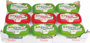 SIRNI NAMAZ LIPTAUER: Sirni namaz z min. 40% mlečne maščobe v suhi snovi in min. 20% suhe snovi. Sestavine: skuta, pasterizirana smetana, rdeča paprika 1,2%, mlečne beljakovine, jedilna sol, glukozno fruktozen sirup, čebula, peteršilj, česen, modificirani koruzni škrob, gostila: E410, E412 in karagenan, prehranske vlaknine, regulator kislosti: citronska kislina, pire paradižnika, drobnjak, kumina, poper, aromatičen kis, barvilo: ekstrakt paprike, naravne arome (listna zelena). Izdelek je toplotno obdelan - pasteriziran. Povprečne hranilne vrednosti na 100 g: Energijska vrednost 623 kJ (150 kcal); Maščobe 11,1 g, od tega nasičene maščobe 7,7 g; Ogljikovi hidrati 5,3 g, od tega sladkorji 4,1 g; Prehranske vlaknine 0,13 g; Beljakovine 7,2 g; Sol 1,1 g. nSIRNI NAMAZ PROVENCE: Sirni namaz z min. 40% mlečne maščobe v suhi snovi in min. 20% suhe snovi. Sestavine: skuta, pasterizirana smetana, jedila sol, zelenjava (drobnjak, čebula, peteršilj, paprika), 0,64% modificirani koruzni škrob, mlečne beljakovine, gostila:E 410, E 412 in karagenan, prehranske vlaknine, regulator kislosti: citronska kislina, aroma (gorčično seme). Izdelek je toplotno obdelan - pasteriziran. Povprečne hranilne vrednostina 100 g: Energijska vrednost 616kJ (149 kcal); Maščobe 11,1 g, od tega nasičene maščobe 7,7 g; Ogljikovi hidrati 4,9 g, od tega sladkorji 3,8 g; Prehranske vlaknine 0,13g; Beljakovine 7,2 g; Sol 0,95 g.