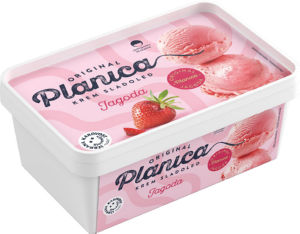 MLEKO, MLEČNA maščoba, sladkor, jagodni pripravek 10 % (sladkor, jagodna kaša in sok iz zgoščenega soka 50 %, barvilo (E162, E160b(ii)), voda, kislina citronska kislina, gostilo E466, aroma), MLEČNE beljakovine, emulgator E471, stabilizator (E410, E412), arome, barvilo (E101, E160a).