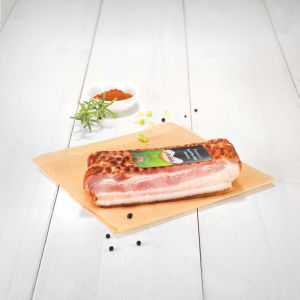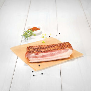 prašičje meso, voda, škrob, sol, arome, stabilizatorja E450, E451, sredstvo za uravnavanje kislosti E500, antioksidant E316, ojačevalec arome E621, dekstroza, vlakna citrusov, svinjske beljakovine, aroma dima, maltodekstrin, konzervans E250