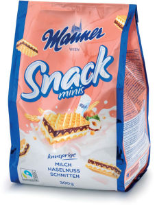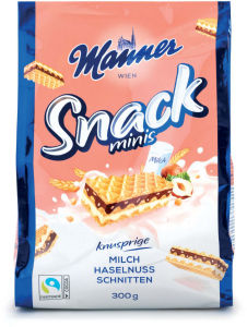 sladkor, rastlinske maščobe (palmova, kokosova), PŠENIČNA moka (19%), LEŠNIKI (10 %), posneto MLEKO v prahu (10%), polnozrnata PŠENIČNA moka (5%), manj masten kakav v prahu, glukozni sirup, škrob, sol, smetana v prahu (0,1%), emulgator: lecitini (SOJA); maslena maščoba, sredstvo za vzhajanje: natrijevi karbonati; naravna aroma. Lahko vsebuje sledi drugih oreškov.