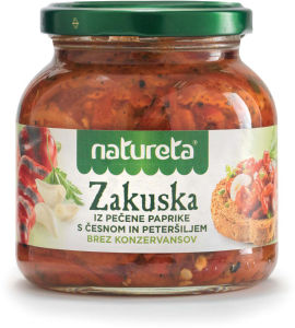 Pečena paprika 85%, sončnično olje, jedilna sol, sladkor, česen 0,5%, peteršilj 0,6%