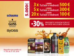 Kupite katerikoli izdelek za nego las Schauma, Gliss, Syoss in barve za lase Syoss, shranite račun, ki dokazuje nakup, ki ga s svojiimi osebnimi podatki (ime, priimek, naslov) in nagradno kartico ozrima kupon, ki jo prejmete na prodajnem mestu pošljete na naslov podjetja Henkel.