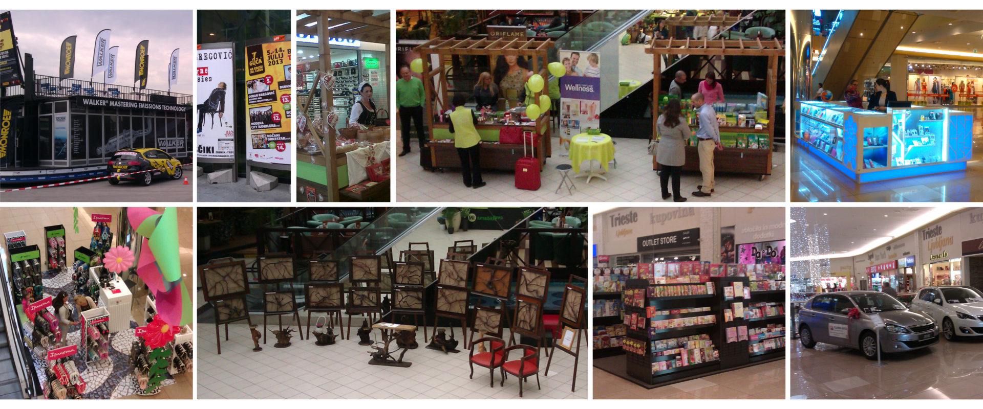 Prostor nudimo v uporabo za promocijo dejavnosti (prodaja razno, promocija proizvodnje in izdelkov…), promocijo avtomobilov, promocijo storitev (oglaševanje, zavarovalnice, finančne storitve, turizem, zdravje…), prodajo izdelkov umetne obrti, ročnih del, prodajo lastnih oziroma domačih pridelkov, itd. Odvisno od lokacije je možna tudi uporaba prostora za postavitev stojal, deljenje letakov, postavitev razstav, ipd.