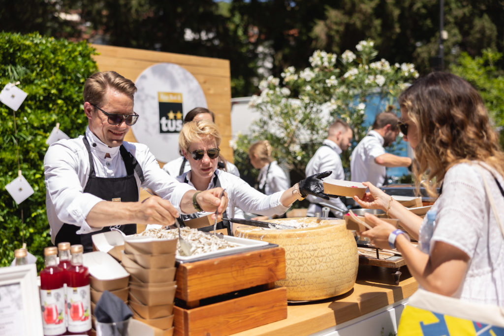 Na letošnjem Oglaševalskem festivalu SOF, v Avditoriju Portorož, smo izvedli veliko promocijo izdelkov Ana Roš & Tuš. Z aktivnem kuhanjem v živo pred gosti smo pripravljali Široke rezance Ana Roš & Tuš v smetanovi omaki in parmezanom ter Kobariške štruklje Ana Roš & Tuš z Malinovim sirupom Ana Roš & Tuš. Gostom smo približali tudi sveže okuse Kombuche, Piva ter Radenske Ana Roš & Tuš. Obiskovalci so bili več kot navdušeni.
