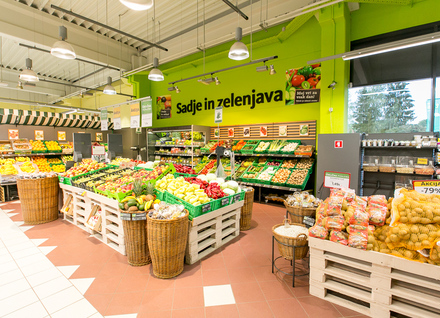Supermarket tako poleg osveženega prodajnega asortimana ponuja tudi bogatejšo ponudbo na oddelku sadja in zelenjave, privlačnejšo delikateso in širšo paleto dnevno svežega kruha in pekovskih izdelkov.