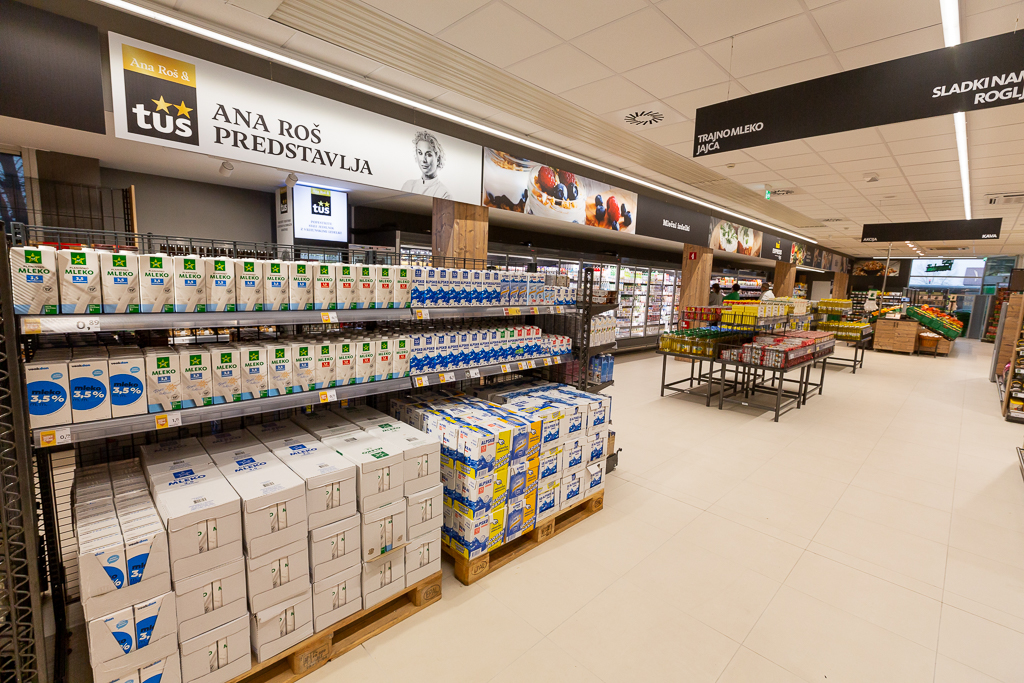 Kupce je danes pričakala nova razporeditev oddelkov in s tem nova nakupovalna pot, ki je še jasnejša ter omogoča hitre in učinkovite nakupe. Ta zdaj vodi med številnimi novostmi v ponudbi. Na vhodu kupce pričaka nov in obogaten oddelek svežega sadja ter zelenjave, ki je izjemno priljubljen. Nova je toploteka, kjer čakajo sveže kuhane in pečene dobrote za malico ali kosilo, povečali smo ponudbo delikates, sveže pečenih pekovskih dobrot, mlečnih izdelkov in mesa, ki je na voljo v priljubljeni mesnici. Poleg tega smo povečali izbor zdrave in bio hrane, uredili poseben kotiček za izdelke Ana Roš & Tuš in razširili ponudbo to-go izdelkov za malice in hitre prigrizke ter dodali nove hladilnike za pijače. Ponudbo na vseh oddelkih smo torej prilagodili povpraševanju kupcev in prvi odzivi, ki smo jih bili deležni danes, so izjemni.