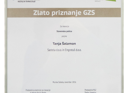 Pomurska Gospodarska zbornica je na minuli 22. letni konferenci ”S povezovanjem do odličnosti” prepoznala sodelovanje med družbo Tuš in Sastelo Ljutomer, ki je pripeljalo do odličnega izdelka. Rezultat je namreč tradicionalna Slovenska potica Slovenske dobrote, ki jo v Sasteli Ljutomer pripravljajo po tradicionalnem postopku iz naravnih sestavin, brez vseh umetnih dodatkov, kupcem pa je na voljo v vseh Tuševih supermarketih. Priznanje za inovativnost je že tretje v letošnjem letu in se ob bok postavlja naslovu Najbolj inovativno živilo leta 2016 po izboru Inštituta za nutricionistiko ter srebrnemu priznanju v kategoriji Najbolj inovativno zdravo živilo 2016, podeljeno na Dnevu inovativnosti 2016 v organizaciji Gospodarske zbornice Slovenije (GZS).