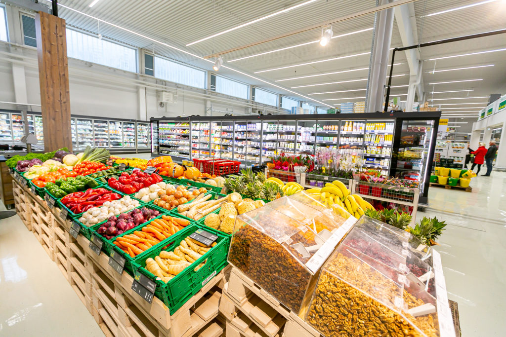Popolnoma prenovljena notranjost, nova razsvetljava in energetsko učinkovita hladilna tehnika zmanjšuje vpliv na okolje, nove prodajne police pa ponujajo še večjo izbiro