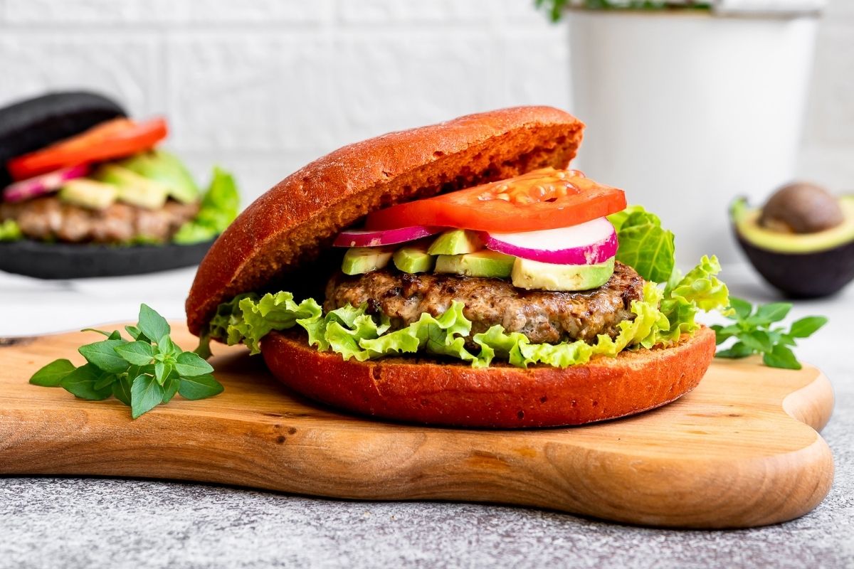 - V vsakega položimo meso, list solate, rezine paradižnika, rezine avokada in rezine redkvice.