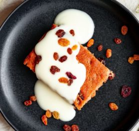 - Pekač postavimo v hladilnik za približno 1 h preden pecivo razrežemo na rezine in postrežemo.