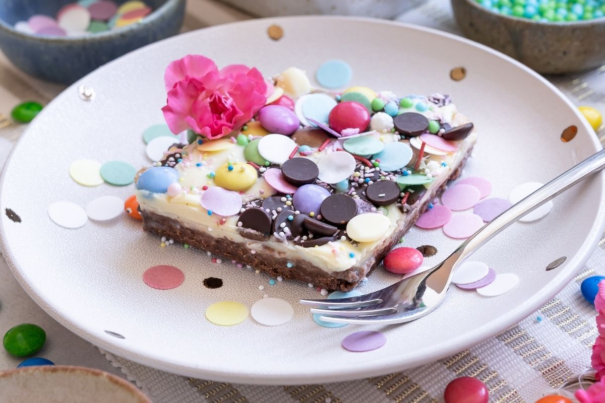 - Tretja plast: Čokoladne kapljice, bonbone in druge okraske potresemo po celi površini pudinga.