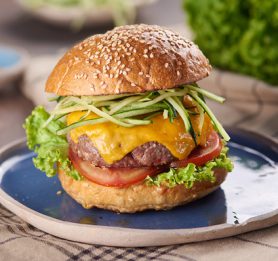 Na ogret žar postavimo ponev in dodamo narezano čebulo in koščke pancete. Mešamo, dokler se čebula ne prepraži, nato dodamo maslo in jabolko, narezano na kocke. Mešamo, dokler se jabolka ne zmehčajo. Ta čas lahko na žaru spečemo fileje svinjske ribice. Na vročo rešetko ali ploščo položimo fileje in jih pečemo do popolne karamelizirane skorjice. Ko to dosežemo, jih obrnemo in postopek ponovimo še z druge strani. Nato jih prestavimo na indirektno stran in tam pečemo do središčne temperature mesa 60 stopinj.